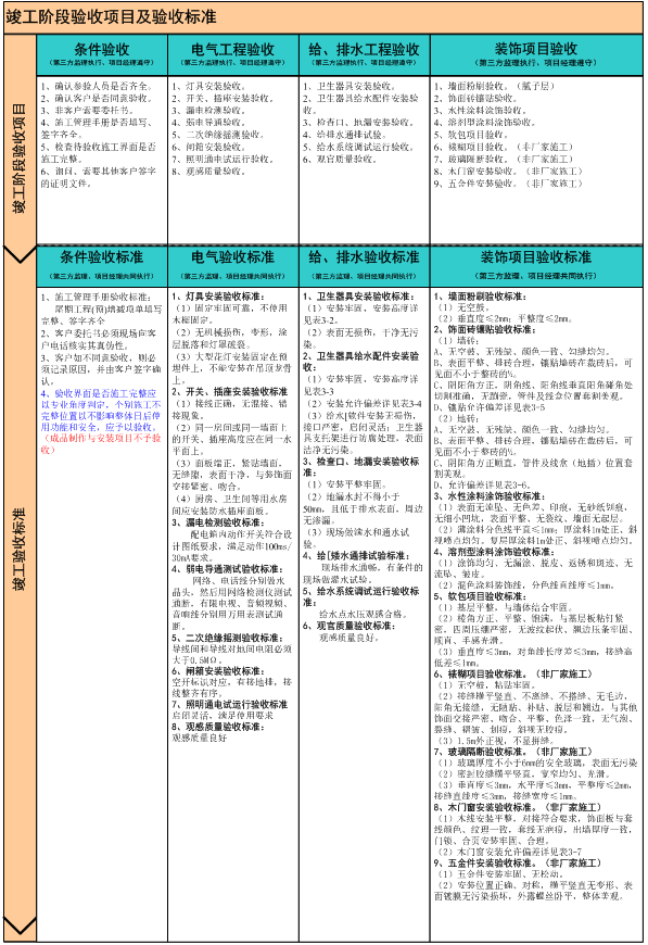 明确各阶段验收项目,统一质量验收规范标准,避免人为性理解和执行偏差。